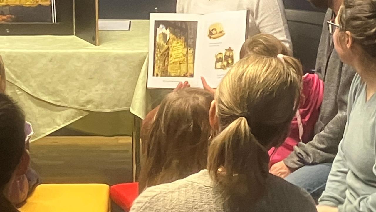 Wegen der Veranstaltung zum Weltfrauentag musste das Vorlesen dieses Mal in den Kinoraum verlegt werden. Anita Reiter präsentierte mit Hilfe des Kamishibai-Theaters die Geschichte von der Ritter Eule - nun auch für die Vorschulkinder und sonstige Interessierte. Im Anschluss gab es noch eine Zeichenaktivität. Eine Schokohäschen war die Belohnung für die Kinder.
